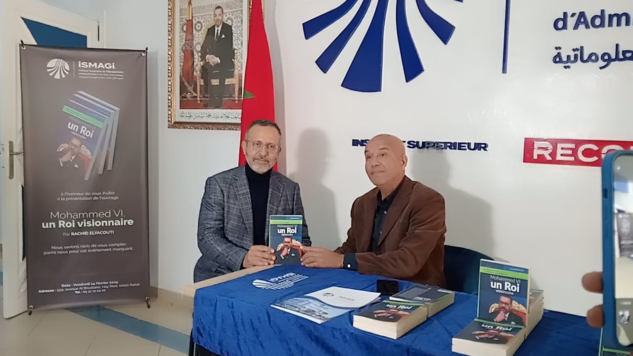 نظم المعهد العالي للتدبير والإدارة والهندسة المعلوماتية iSMAGi، زوال امس الجمعة، حفل توقيع لكتاب “محمد السادس ملك ذو رؤية”، من تأليف رشيد الياقوتي، بحضور متميز لسيد عبد الله العيساوي الرئيس المؤسس للمعهد ، وثلة من الفنانين والكتاب المغاربة، بالاضافة الى الحضور الشرفي لسفير دولة جزر القمر.