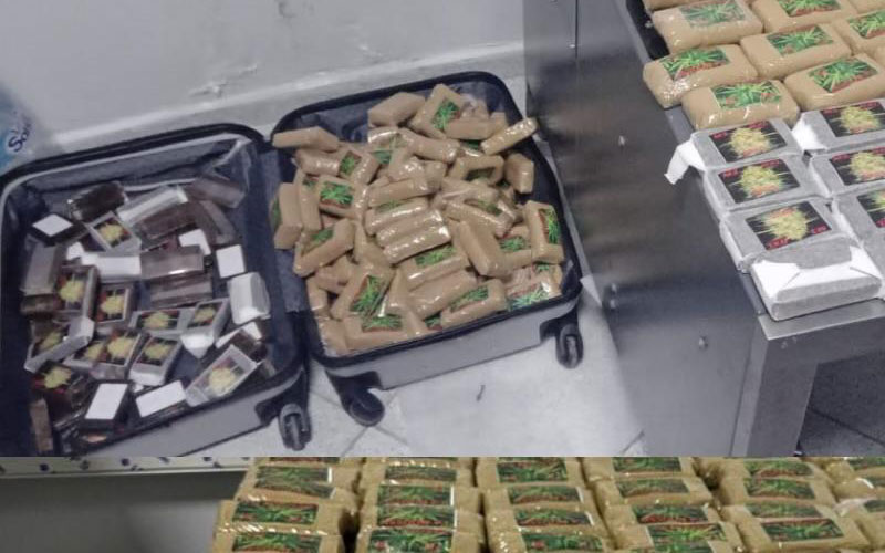 عثرت مصالح الشرطة العاملة بمطار طنجة على ما يقدر بـ 46 كلغ من المخدرات داخل حقائب مسافرين.