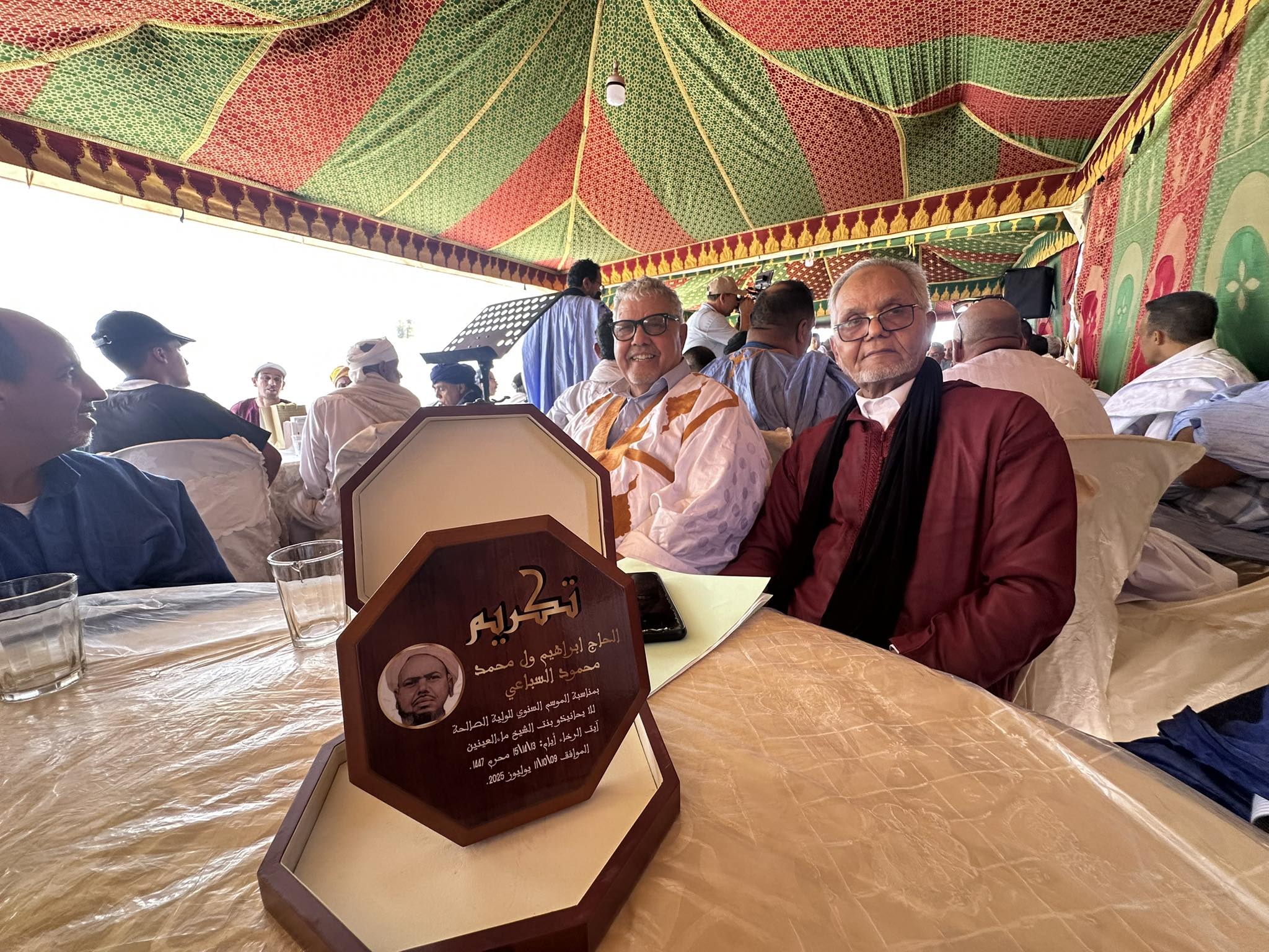 جعل الله اعمالنا خالصة لوجه الله لا سمعة ولا رياء فيها وان يجازي خير الجزاء كل من ساهم وساعد في تحقيق هذه المنجزات ولو بالكلمة الطيبة ، وان يرحم باعمالنا هذه الموتى ويستفيد منها الأحياء ، مجددا تشكراتي الحارة لجمعية الشيخة حانة يحاند ووالدتها الشيخة ماحة وابنة عمها الشيخة بوها على تكريم والدنا المرحوم ابراهيم ولد محمد محمود السباعي وهي عادة حميدة درجت عليها هذه الجمعية المباركة مترحما في ذات الوقت على كل من عاش في هذه الزاوية المباركة وأخص بالذكر مقدم الزاوية المرحوم عبدالرحمان ولد متالي والمرحوم الحاج محمدي والحاج محمد ولد بوي وصديق والدنا المرحوم الحسن امحمد والمرحوم القائد احمد بوطعام الذي كان والدي كاتبا خاصا له قبل ان يعين معلما بمدرسة الشيخ النعمة سنة 1952 وأبنية المرحومين سي الحسين والحاج عمر وكل اصدقاء ومحبي والدنا من اهل ايت الرخاء رجالا ونساء احياءوامواتا ، مع الدعاء بالرحمة والمغفرة للمغفورين لهما الملكين محمد الخامس والحسن الثاني وان ينصر وارث سرهما جلالة الملك محمد السادس وولي عهده مولاي الحسن وسائر أفراد الاسرة الملكية الشريفة والسلام عليكم ورحمة الله تعالى وبركاته ….