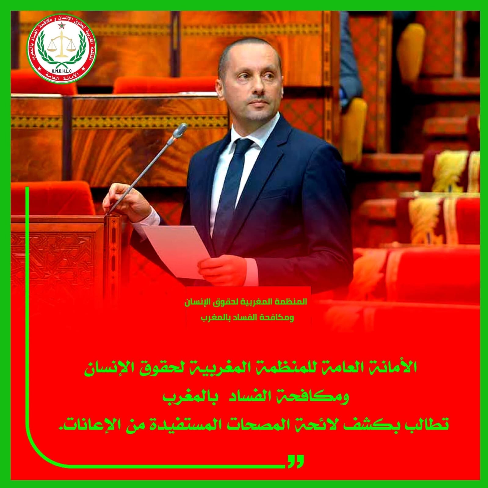 وانطلاقاً من مبادئها الراسخة في الدفاع عن حقوق المواطنين ومحاربة الفساد والزبونية واستغلال النفوذ، فإن المنظمة المغربية لحقوق الإنسان ومكافحة الفساد بالمغرب.