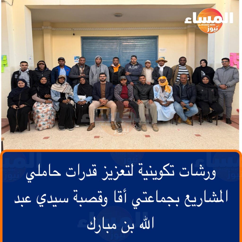 في إطار مواكبة ودعم حاملي المشاريع الممولين من طرف الوكالة الوطنية لتنمية مناطق الواحات وشجر الأركان، وتنفيذاً لطلب المشاريع الذي أطلقته الوكالة برسم السنة الجارية، تنظم هذه الأخيرة سلسلة من الورشات التكوينية لفائدة 48 حامل مشروع على مستوى جماعتي أقا وقصبة سيدي عبد الله بن مبارك، وذلك خلال الفترة الممتدة من 06 إلى 30 دجنبر 2025 بمدينة أقا.