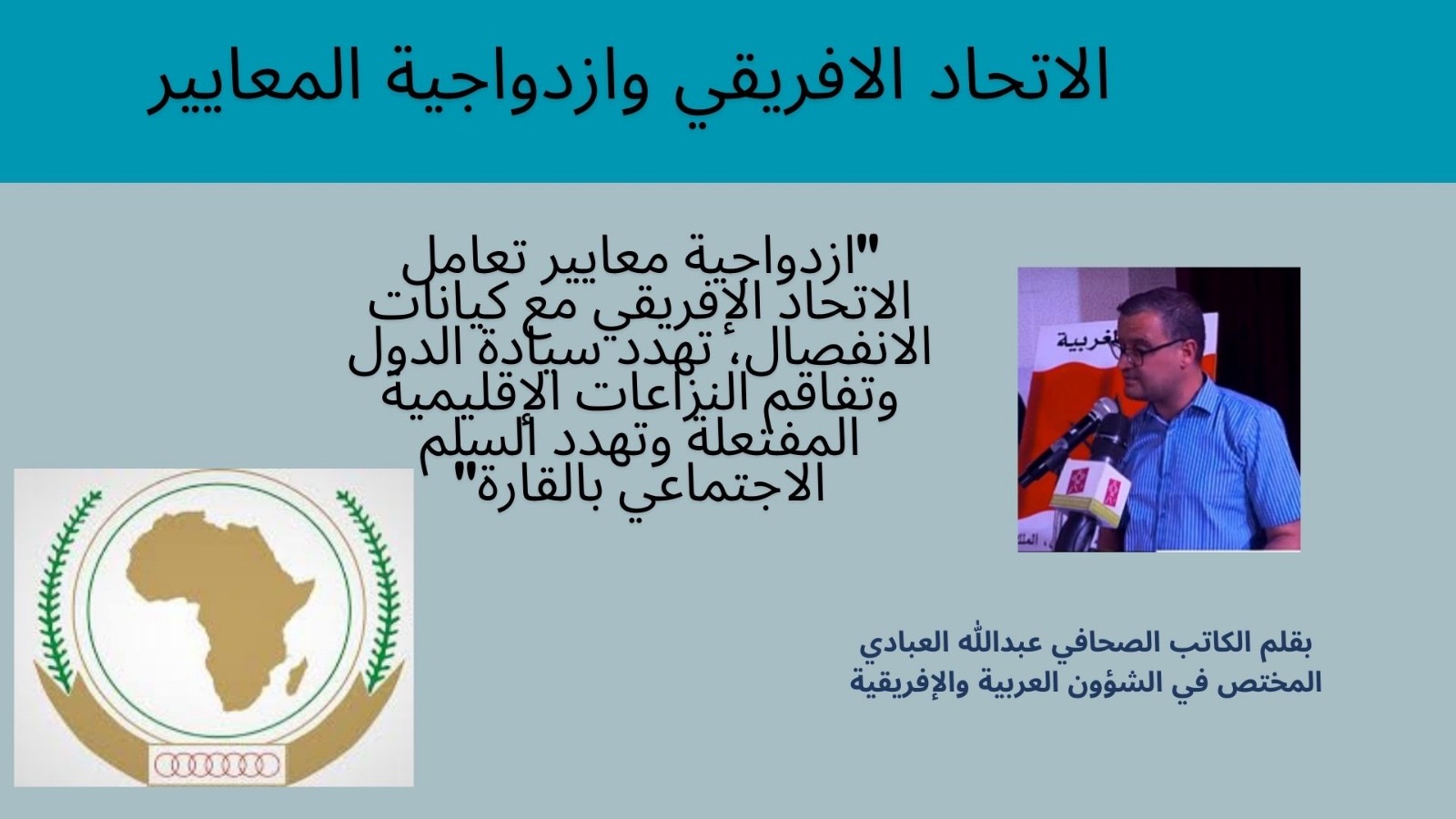 “ازدواجية معايير تعامل الاتحاد الإفريقي مع كيانات الانفصال، تهدد سيادة الدول وتفاقم النزاعات الإقليمية المفتعلة وتهدد السلم الاجتماعي بالقارة”