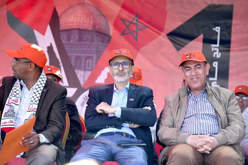 واغتنم الاتحاد تزامُن “ذكرى عيد العمال” مع استمرار “حرب غزة”، ليجدد “موقف الانحياز لنضال الشعب الفلسطيني ومقاومته، لأن هذا الانحياز شرفٌ لكل أحرار العالم، والشعب المغربي أبان عن وفائه للقضية من خلال مَسيراته ووقفاته وإسناده للمقاومة الفلسطينية في مواجهة حرب الإبادة الجماعية التي يمارسها الكيان الصهيوني الغاصب…”، يورد عبد الإله دحمان، نائب الأمين العام للاتحاد الوطني للشغل بالمغرب، مبرزا أن من أسباب اختيار نقابتهم هذه السنة القضية الفلسطينية عنوانَ تخليدها لهذه المحطة الأممية، هو “الوفاء للنضال والكفاح الذي انطلق منذ 50 سنة … وهو ما يقتضي من المغرب إيقاف مسلسل التطبيع وإلغاء كافة الاتفاقيات المرتبطة به”.