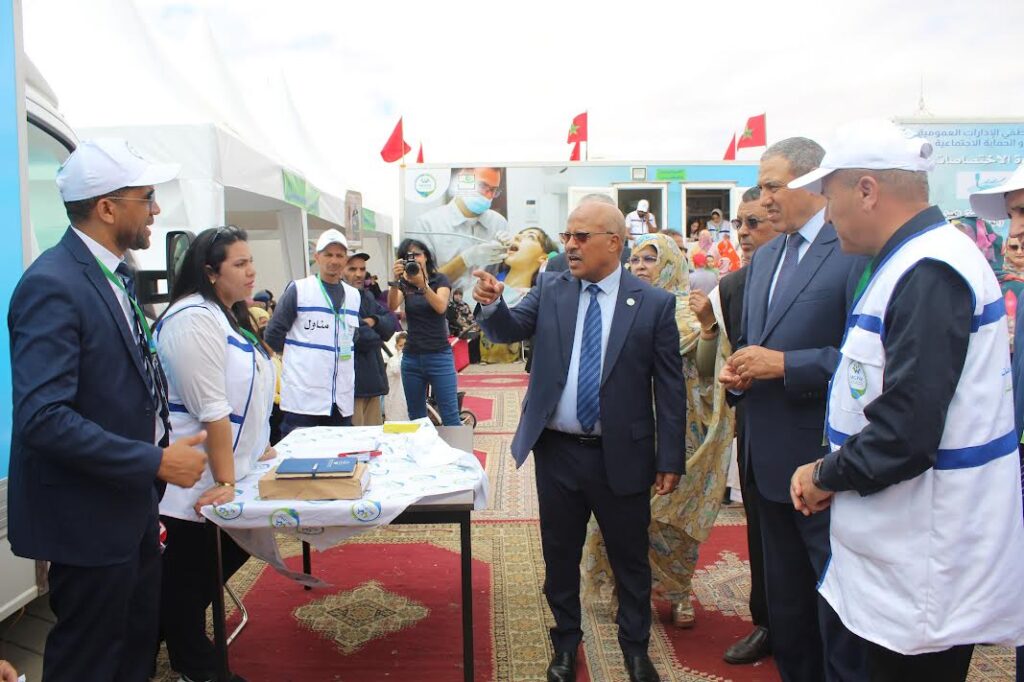 تماشيا مع الأرادة الملكية في تنزيل المشروع المجتمعي الرائد المتعلق بتعميم الحماية الاجتماعية والتغطية الصحية الشاملة، وفي سياق التنزيل الفعلي للمخطط الاستراتيجي الخماسي 2021-2025 في الشق المتعلق بتقريب الخدمات الاجتماعية والصحية من المنخرطين وذوي حقوقهم بمختلف جهات وأقاليم وعمالات المملكة المغربية، تحقيقا للعدالة الاجتماعية والمجالية وتكريسا للحق الدستوري في التضامن التعاضدي، تفضل يوم الخميس 23 ماي 2024 السيد عبد السلام بكرات والي جهة العيون الساقية الحمراء رفقة السيد مولاي إبراهيم العثماني رئيس المجلس الإداري للتعاضدية العامة لموظفي الإدارات العمومية بإعطاء انطلاقة القافلة النمودجية الأولى في عهد الأجهزة المسيرة الحالية وذلك يومي 23 و24 ماي 2024 بساحة المشور بمدينة العيون.