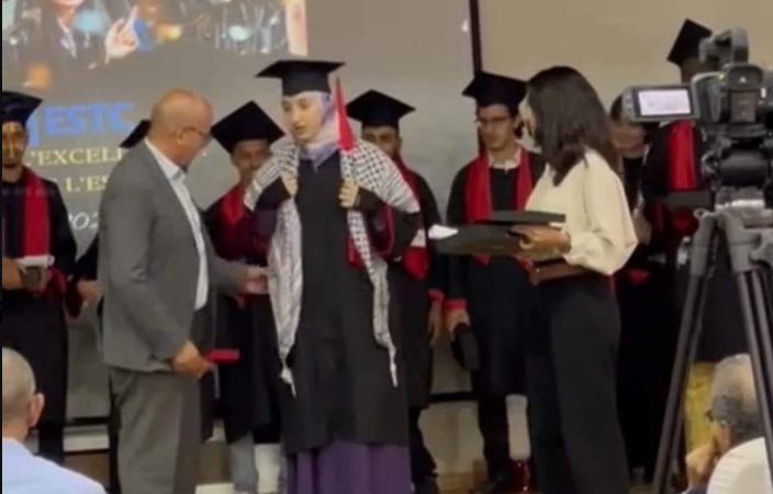 وشدد البيان على أن حمل الكوفية الفلسطينية يُعتبر مفخرة للطالبة ولذويها، تنضاف إلى تفوقها الدراسي، داعياً إلى “اتخاذ موقف حازم تجاه هذا السلوك الشاذ