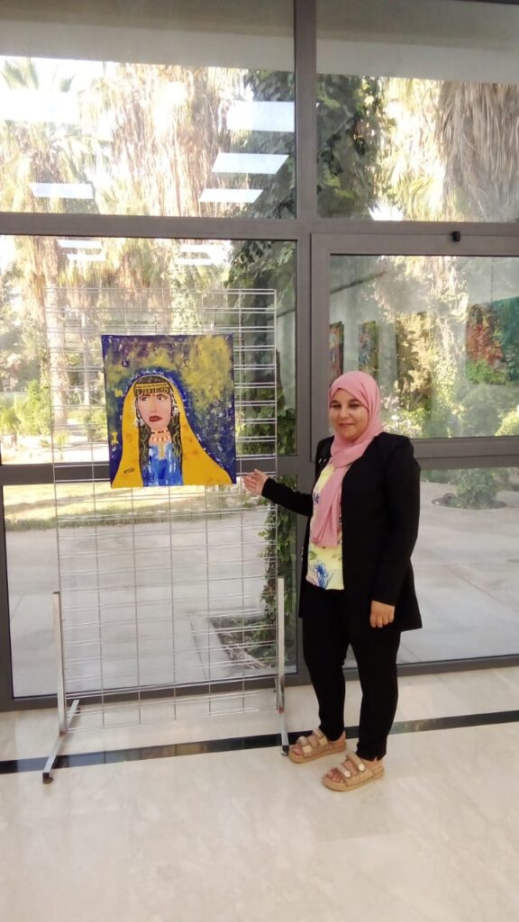 وتواصل الفنانة الحسنية، من خلال مشاركتها، الاهتمام بالمرأة الامازيغية والمغربية عموما وهو ما يمثل تنوع الثقافة المغربية، حيث تعتمد في رسم لوحاتها على أسلوب تصويري انطباعي تمزج من خلاله الرموز بمهارة، باستخدام ألوان زاهية، وتقييم أنشطة مختلفة تزاولها المرأة المغربية وفي اوضاع مختلفة تلامس روح المرأة الأنثى وشريكة الرجل.