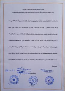 أصدرت عدة جمعيات مدنية بيانا استنكاريا تشجب فيه العشوائية الاخذة في الاتساع بالأحياء السكنية مقابل إعتماد السلطات المحلية مقاربة عرجاء تتمثل في تحرير الواجهات الرئيسة ماينتج عنه تسلل الباعة داخل أزقة الإقامات السكنية إقامة الياسمين وتحديدا السكتور 1 وحيث أن طابع العشوائية بهذه الأحياء السكنية يفوق العشوائية التي كان عليها دور الصفيح.